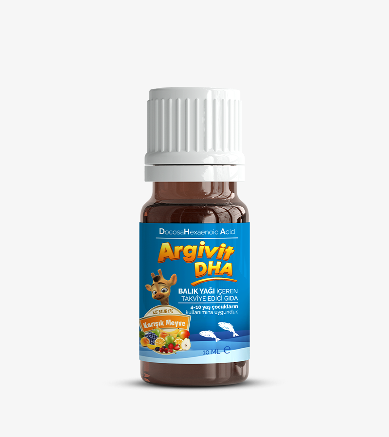 Beyin ve göz sağlığı, her yaşta yaşam kalitemizin temelini oluşturur. Argivit DHA, içeriğindeki Omega-3 yağ asitleri DHA ve EPA ile normal beyin fonksiyonlarının ve normal görme yetisinin korunmasına katkıda bulunmak için formüle edilmiş bir gıda takviyesidir. Damla formu sayesinde, hem çocukların hem de yetişkinlerin günlük Omega-3 desteğini almasını kolaylaştırır. İçeriğindeki DHA;