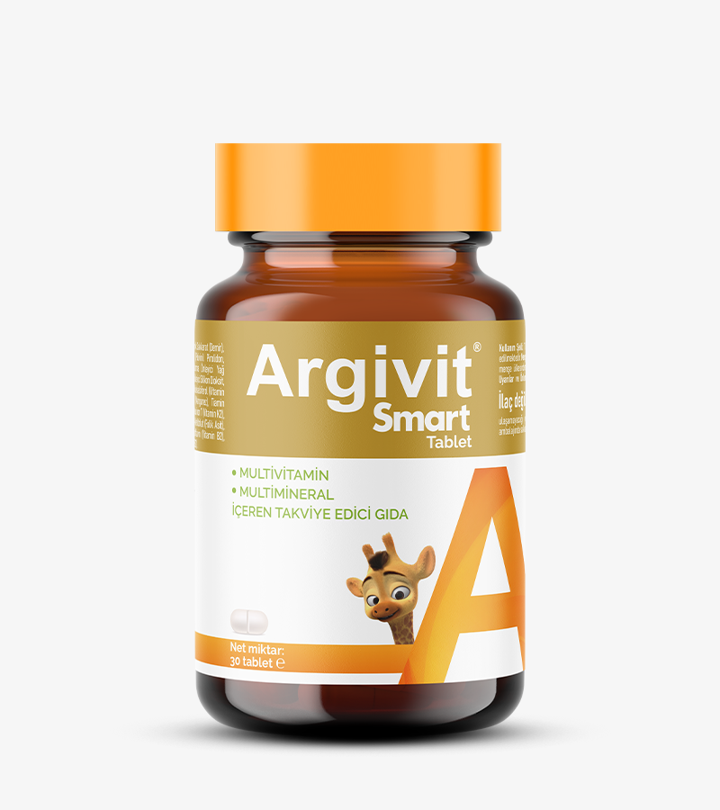 Argivit Smart Tablet, Kolin ile birlikte zengin bir multivitamin ve mineral kompleksi içeren lezzetli bir sıvı takviye edici gıdadır. İçeriğindeki vitamin ve mineraller, çocukların normal büyüme ve gelişimi, bağışıklık sistemi ve enerji metabolizmasının desteklenmesine katkıda bulunur. Tablet formuyla 11 yaş üzeri bireyler de rahatlıkla tüketebilir.